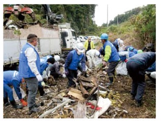 ![]() ▲不法投棄現場でのボランティア撤去 |