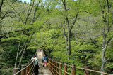 日本三名瀑に数えられる「袋田の滝」。高さ120メートル・幅73メートルの大きさを誇ります。大岸壁を四段に流れることから、別名「四度の滝」とも呼ばれ、その昔、西行法師が訪れた際、「四季に一度ずつ来てみなければ本当の良さはわからない」と絶賛したことからとも言われます。大子町の代名詞ともいえる、メインスポットです。 画像をクリックすると、拡大画像が表示されます。 |