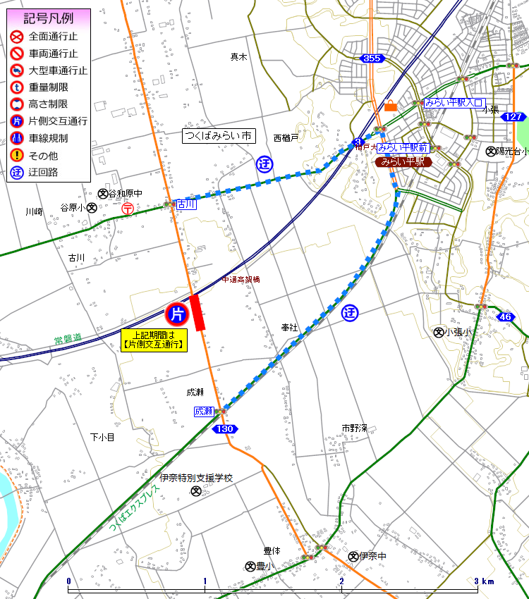 管轄事務所 | 土浦土木事務所 TEL 029-822-4346 | 規制内容 | 片側交互 | ||