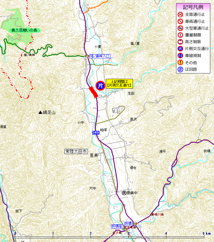 管轄事務所 | 常陸太田工事事務所 TEL 0294-80-3362 | 規制内容 | 片側交互 | ||