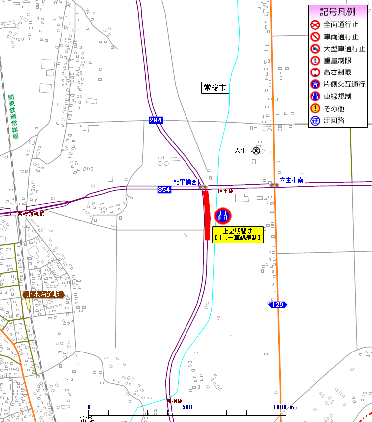 管轄事務所 | 常総工事事務所 TEL 0297-42-2505 | 規制内容 | (上り) 一車線規制 | ||