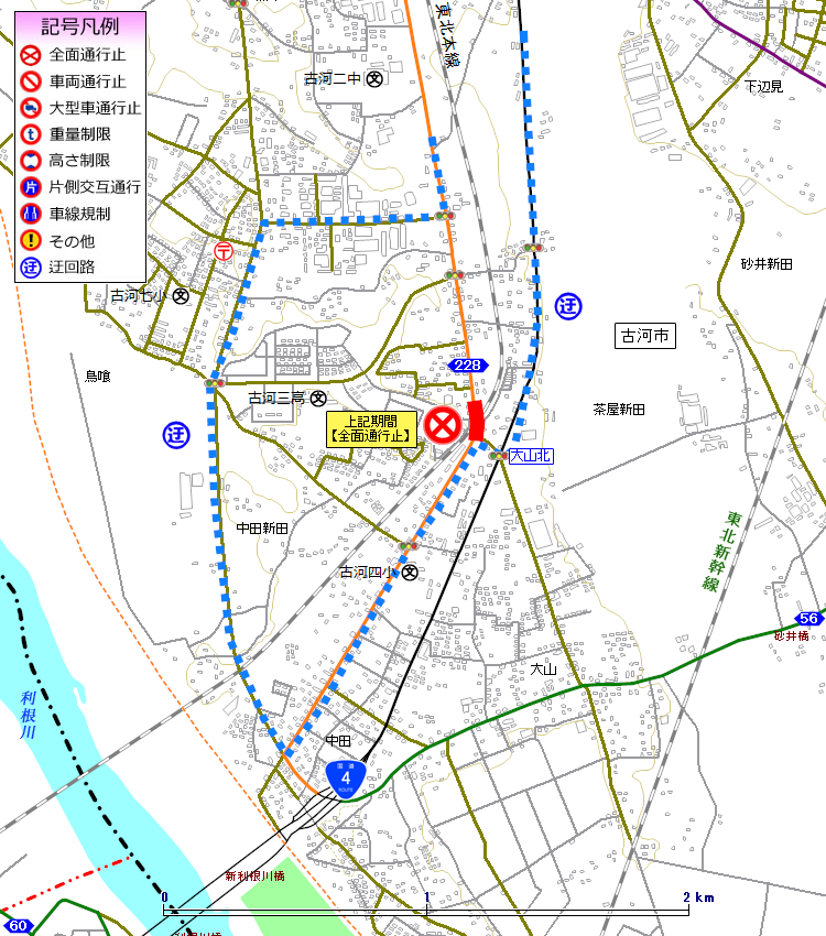 | 管轄事務所 | 境工事事務所 TEL 0280-87-0458 | 規制内容 | 全面通行止 | ||