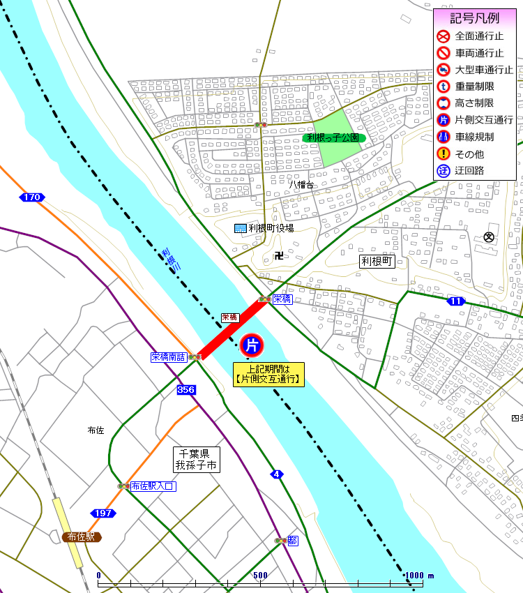| 場所 | 千葉県我孫子市布佐〜利根町布川 | 迂回路 | |||