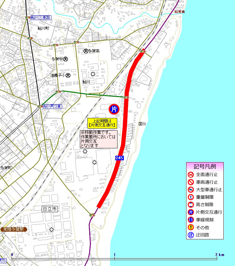| 管轄事務所 | 高萩工事事務所 TEL 0293-22-2255 | 規制内容 | 片側交互 | ||