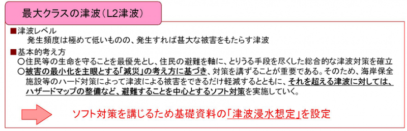 もう一つは、住民避難を柱とした総合的防災対策を構築する上で想定する津波(L2津波)です。