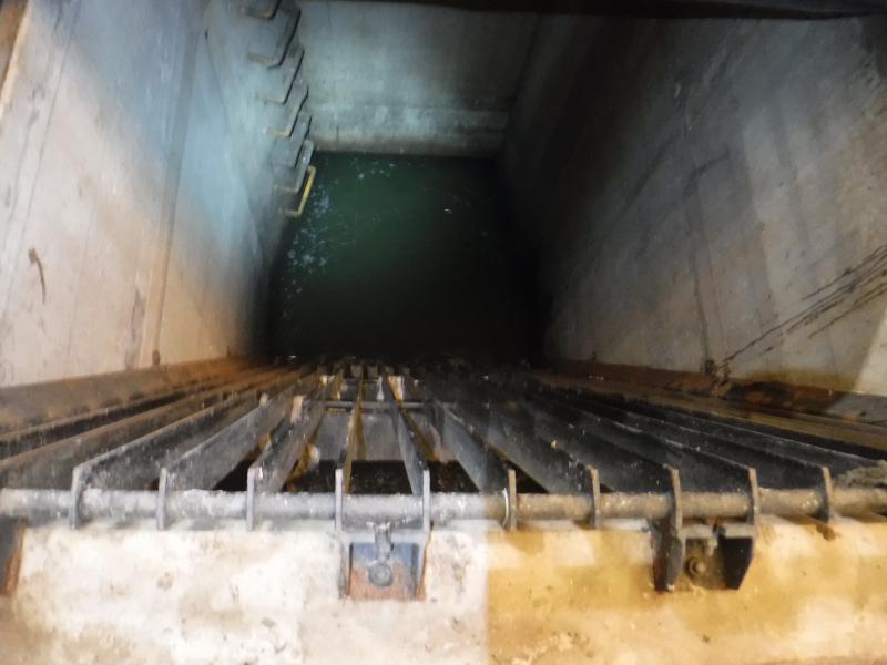 沈砂池の内部です。 この床の下に水路があり、そこを流入下水が流れていきます。 |