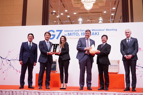 高橋靖水戸市長からは、参加国、機関名等を印字した置き型の「水府提灯」(G7特別バージョン)が贈呈されました。