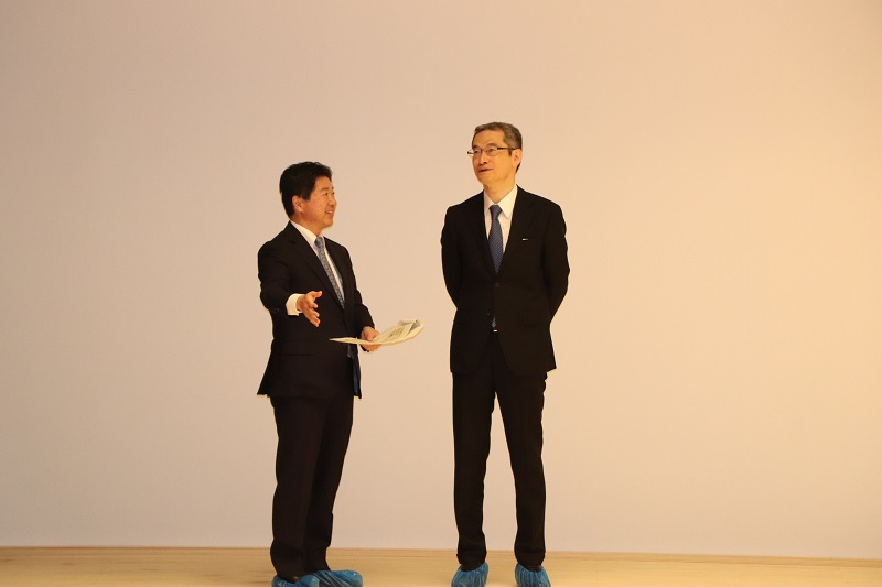 当日は、大井川和彦茨城県知事と髙橋靖水戸市長がお出迎えをし、施設内を案内しました。