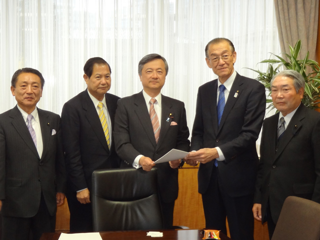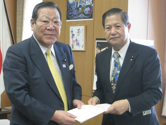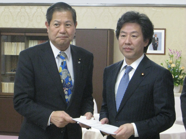 全国都道府県議会議長会地方自治委員長として、定例総会議決事項について、下地幹郎内閣府特命担当大臣、大島敦総務副大臣等に対して要請活動を行いました。
