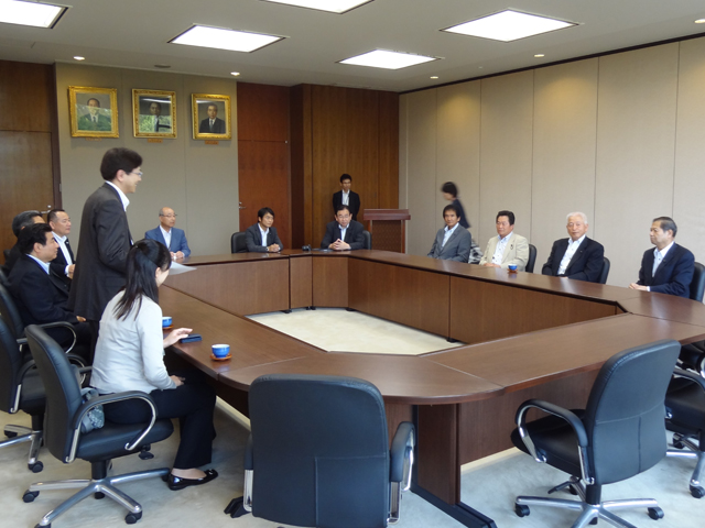 県議会議事堂で市町村長から森林湖沼環境税の継続を求める要望を受けました。