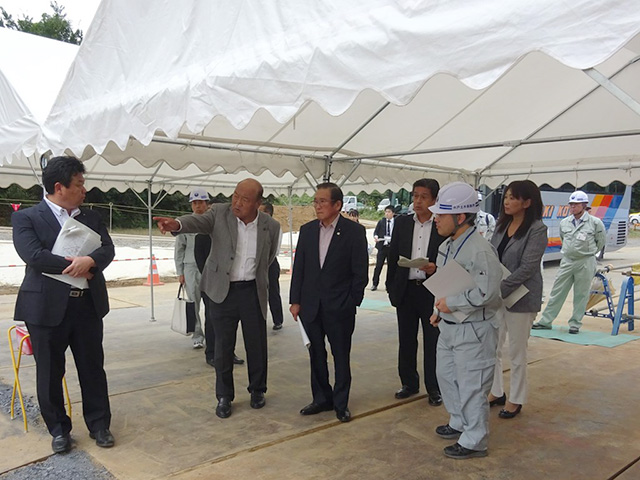 バイパスの整備状況について,常陸大宮土木事務所から説明を受けた後,現地調査を実施しました。
