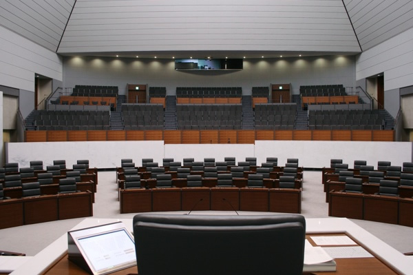 茨城県議会の議事堂は5階だて。 どんな部屋があるのか、写真を見ながら探検してみよう! 写真をクリックすると大きく見ることができるよ。