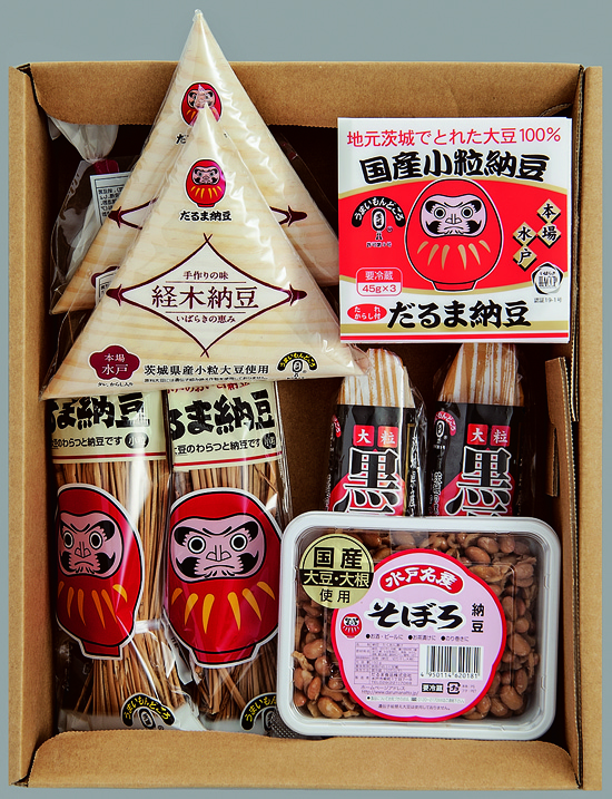 茨城県産大豆を使用した本場水戸だるま納豆。大豆の味がしっかりした納豆です。