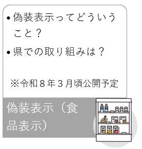 消費者の皆様が食品を購入するとき、食品の内容を正しく理解し、選択できるよう、食品表示の基準が定められています。食品表示の適正化のため、県では以下の取組をしています。