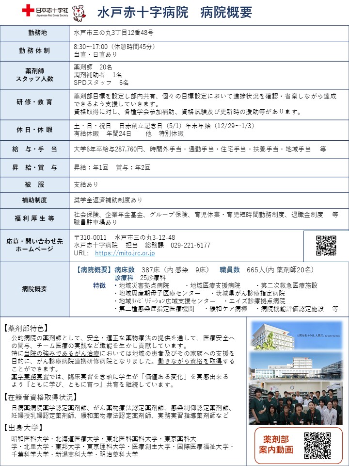 ・協議会参加病院の紹介 ・病院薬剤師の業務紹介 ・現役病院薬剤師による個別相談 等 |