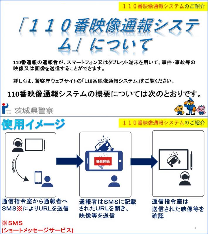 詳しくは、警察庁Webサイトの「110番映像通報システム」(外部サイトへリンク)をご覧ください。