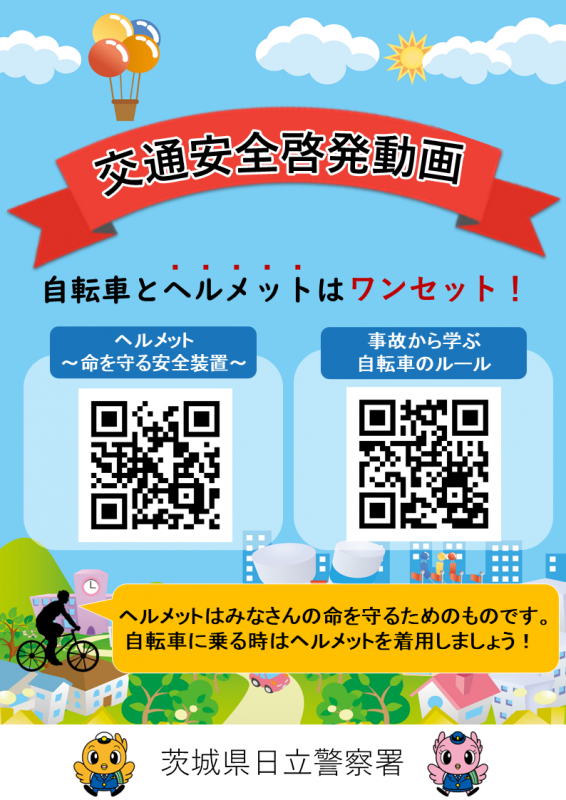 ぜひ、二次元コードから啓発動画をチェックして、ヘルメットの重要性を再確認し安全に自転車を利用しましょう。