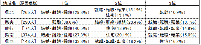 「就職・転職・転業」や「転勤」といった就業関係の割合が高い