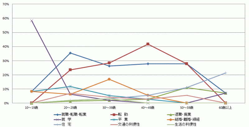 県内移動で最も多い理由は「住宅(新築・購入・借り換え)」