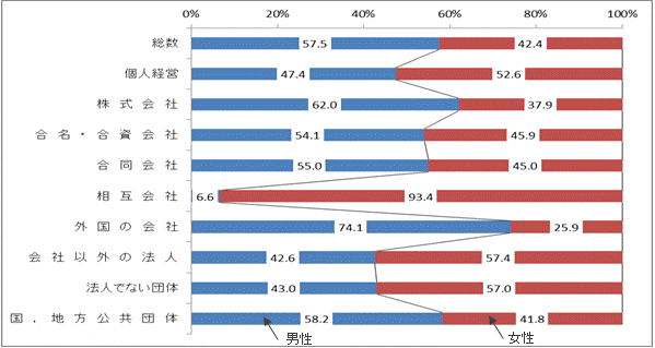 全国の結果は,「民営」では「株式会社」(同61.6%)及び「外国の会社」(同57.8%)で,「国,地方公共団体」では「国」(同80.8%)で高くなっている。(第1-20表及び第1図)