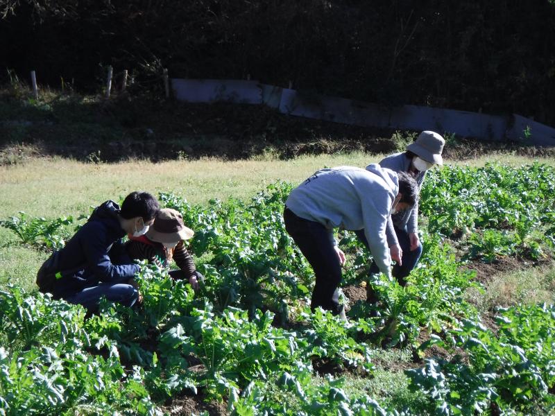 畑で大根と柚子を収穫し,地域で昔から作られている「ゆず巻き」作りを体験したり,今年できたての酒粕で甘酒作りを行いました。