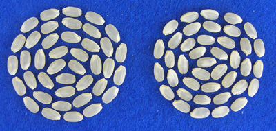 (写真1:玄米の外観(各40粒)一番星(左)あきたこまち(右))