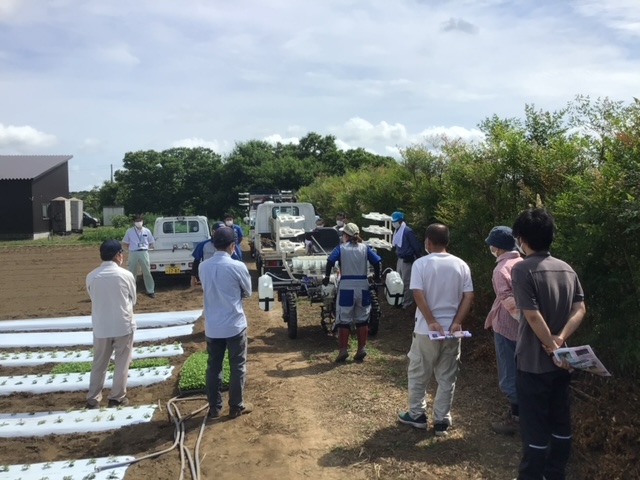 6月28日、JA常陸笠間地区小ギク部会が、小ギク用定植機の実演会を開催し、小ギク生産者、井関農機、JA、笠間市等、関係者計14名が参加しました。