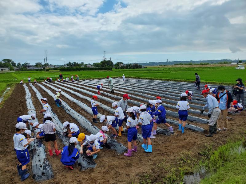 6月10日(金)に「潮来市北浦湖岸自然を守る会(潮来市)」と延方小学校2年生47名がひまわりの種まきを行いましたので、取組みの様子をご紹介します。