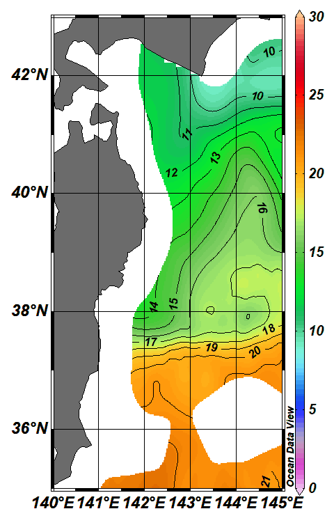 ホーム > しごと・産業 > 農林水産業 > 水産業 > 茨城県水産試験場 > 漁業無線局 > AMSR(高性能マイクロ波放射計)表面水温画像(東北沖合海域) > AMSR水温画像2022年(令和4年)6月