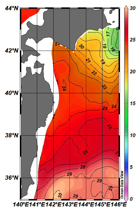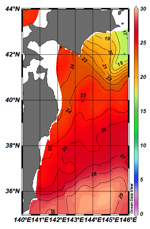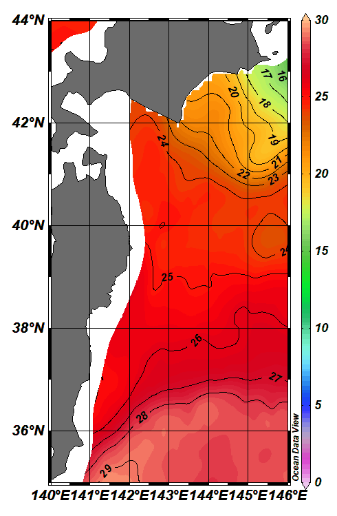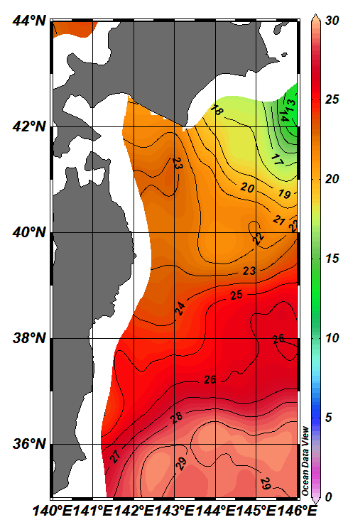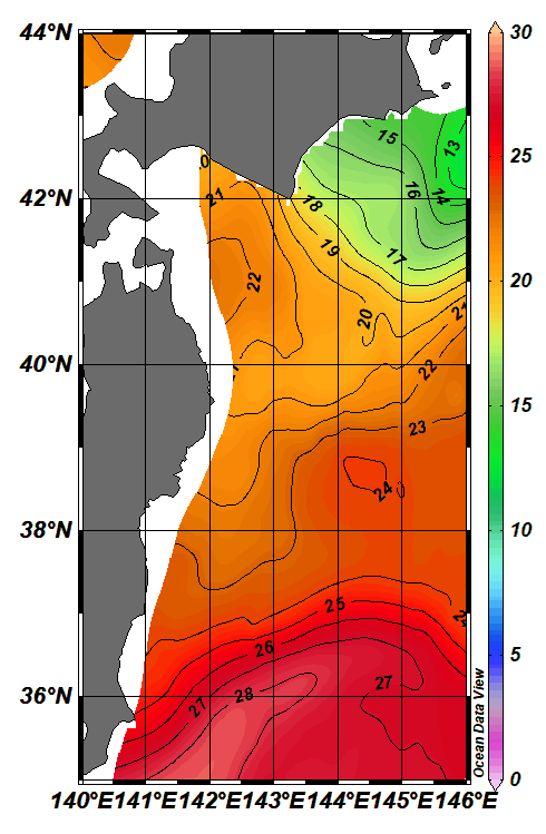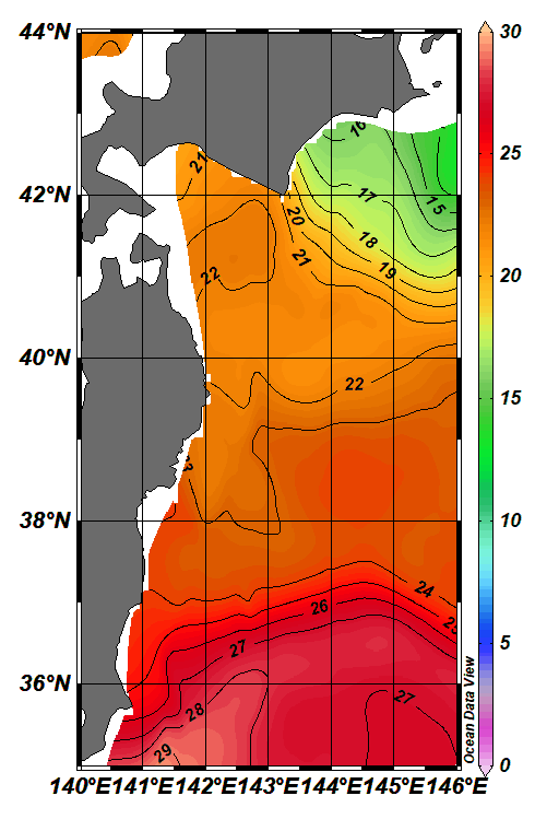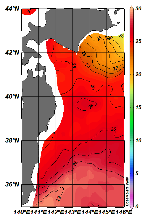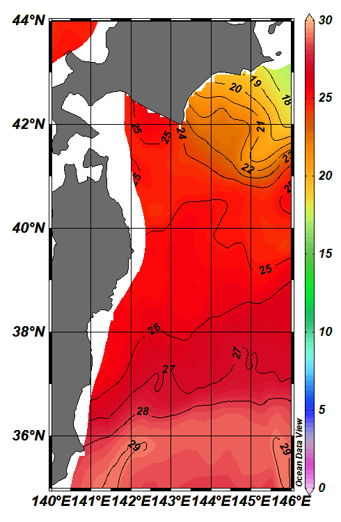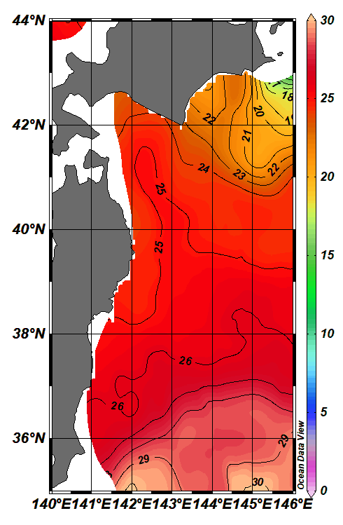 ホーム > しごと・産業 > 農林水産業 > 水産業 > 茨城県水産試験場 > 漁業無線局 > AMSR(高性能マイクロ波放射計)表面水温画像(東北沖合海域) > AMSR水温画像2025年(令和7年)9月