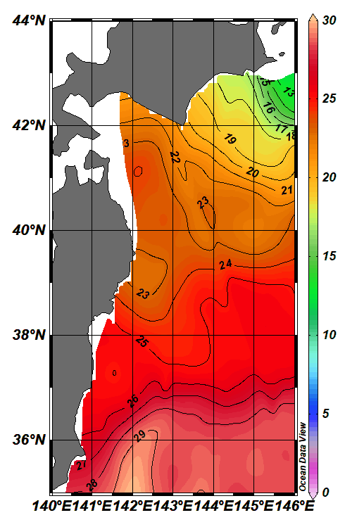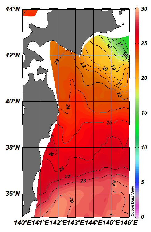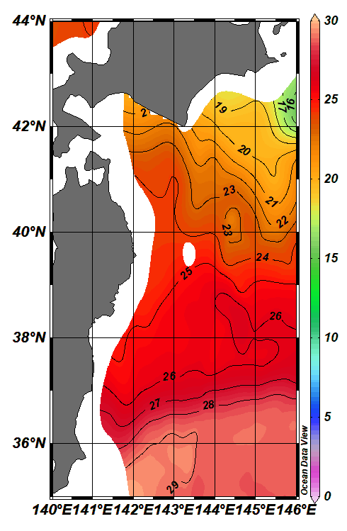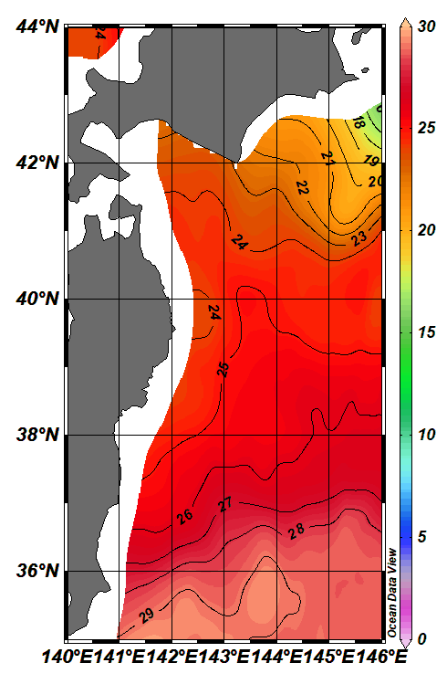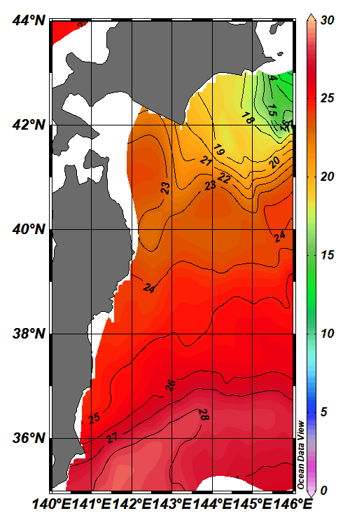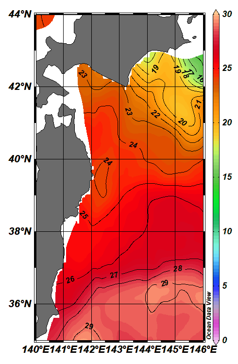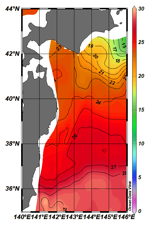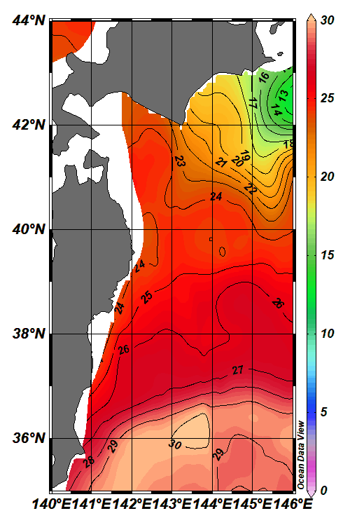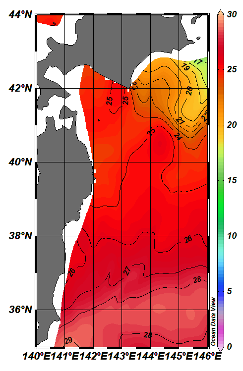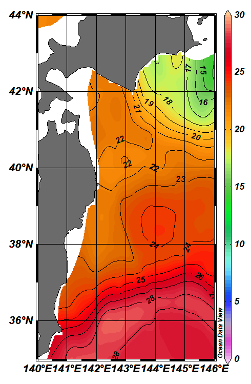 ホーム > しごと・産業 > 農林水産業 > 水産業 > 茨城県水産試験場 > 漁業無線局 > AMSR(高性能マイクロ波放射計)表面水温画像(東北沖合海域) > AMSR水温画像2025年(令和7年)9月