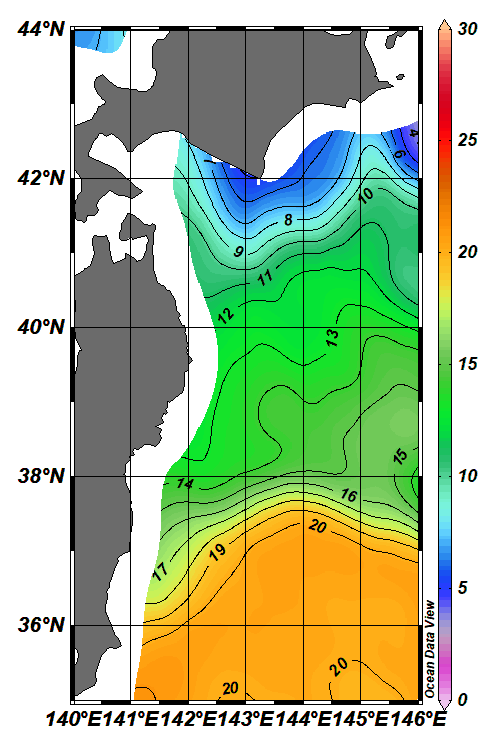 ホーム > しごと・産業 > 農林水産業 > 水産業 > 茨城県水産試験場 > 漁業無線局 > AMSR(高性能マイクロ波放射計)表面水温画像(東北沖合海域) > AMSR水温画像2025年(令和7年)12月