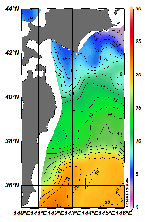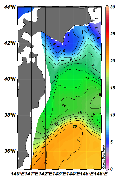 ホーム > しごと・産業 > 農林水産業 > 水産業 > 茨城県水産試験場 > 漁業無線局 > AMSR(高性能マイクロ波放射計)表面水温画像(東北沖合海域) > AMSR水温画像2026年(令和8年)1月