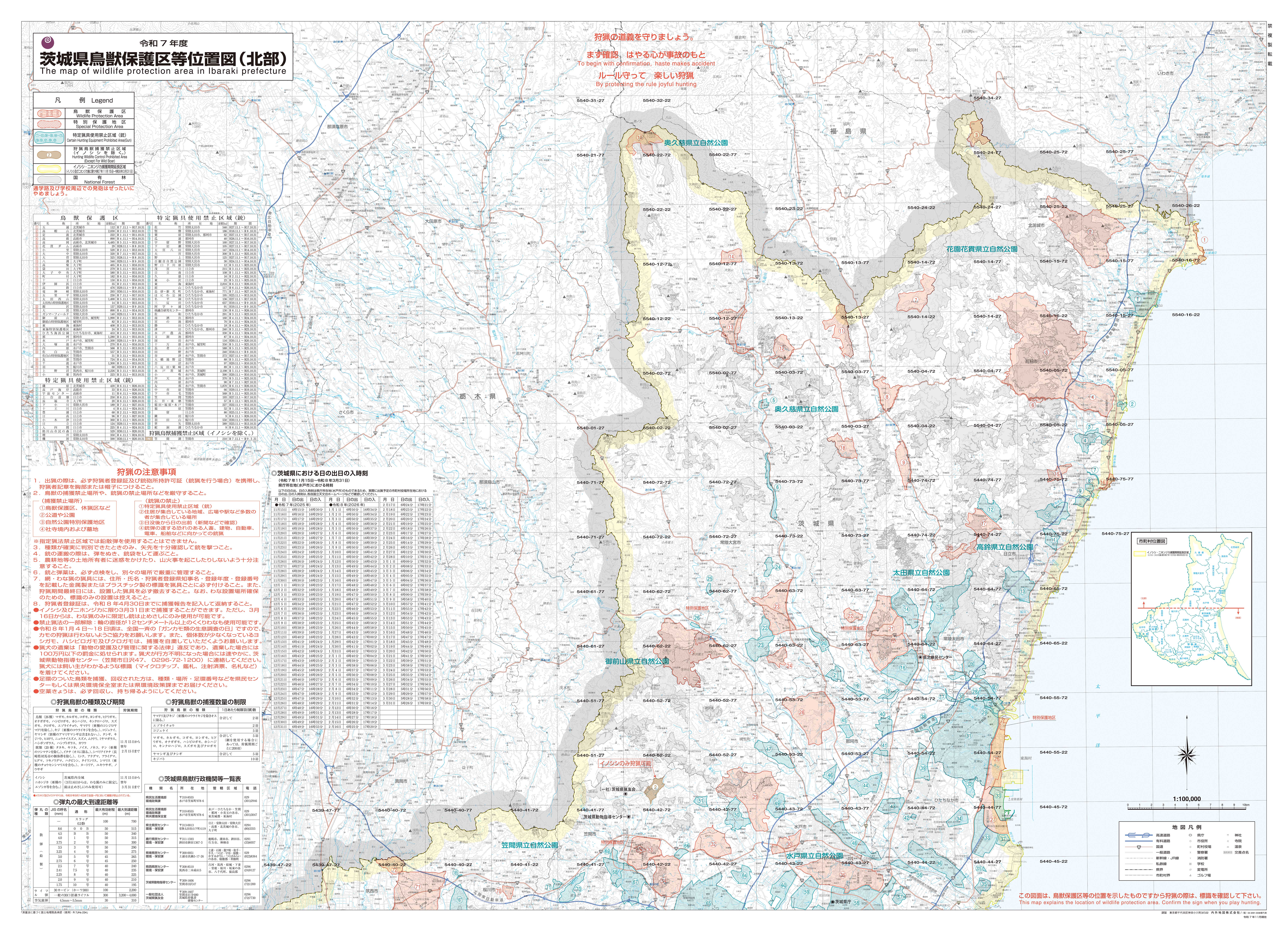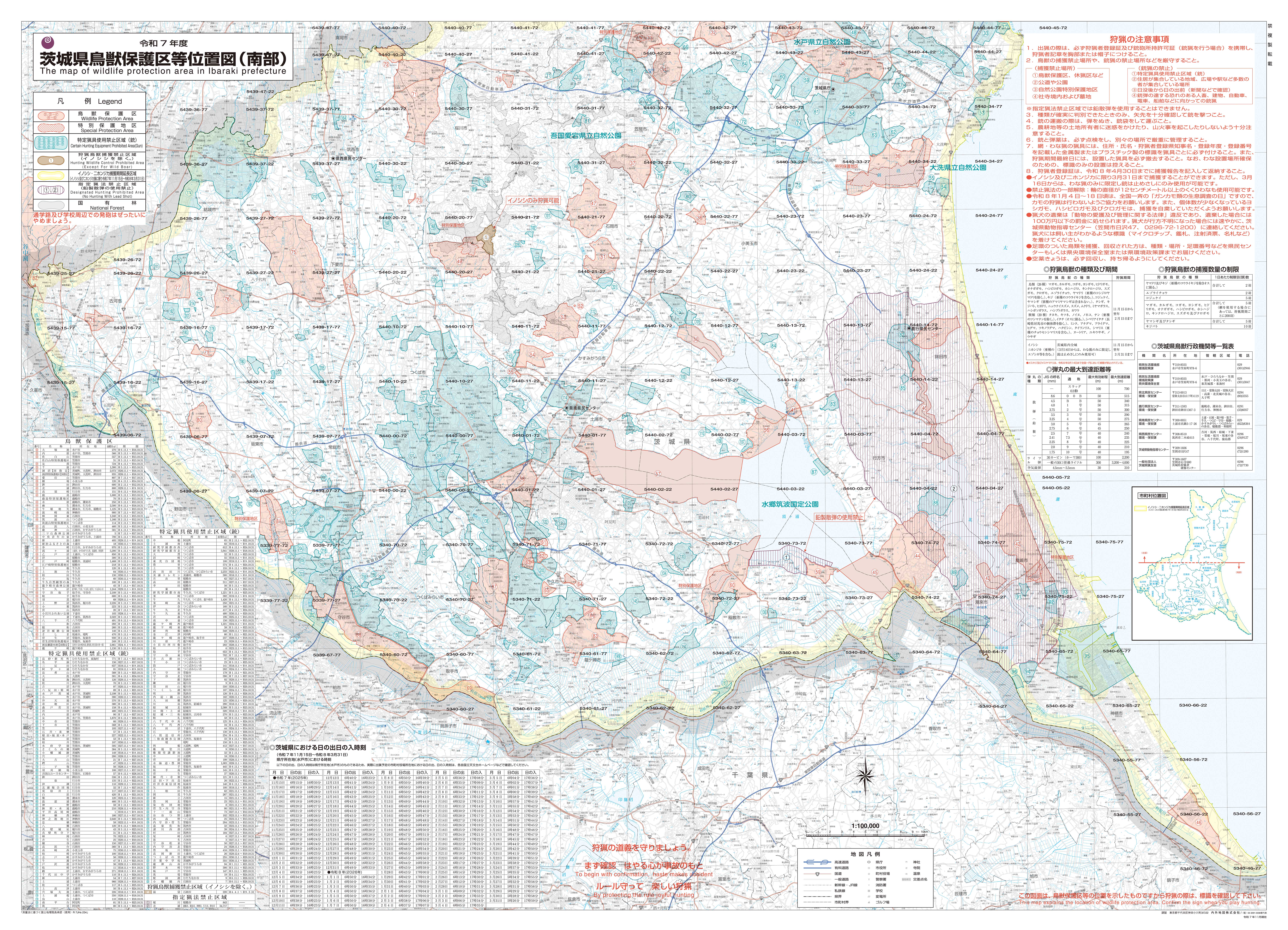 鳥獣保護区等位置図(ハンターマップ)は、鳥獣保護区、特定猟具使用禁止区域及び指定猟法禁止区域等のおおよその位置と区域を図示したものです。区域等は茨城県報告示及び現地の制札等で確認してください。 位置図のデータは以下のPDFファイル等で御覧いただけます。