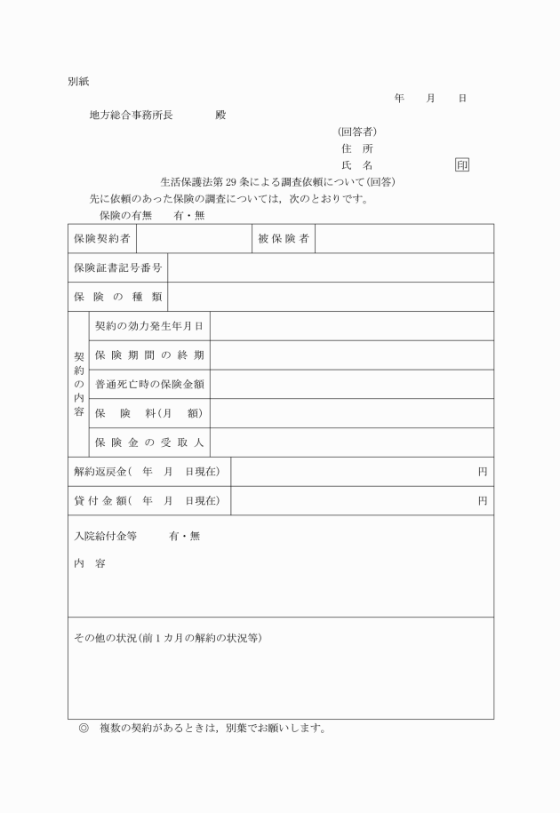 第7条の2 地方総合事務所長は,扶養義務者の扶養の可否を確認するために,要保護者の扶養義務者に対して扶養義務の履行について照会するときは,扶養照会書(様式第31号の2)によつてしなければならない。