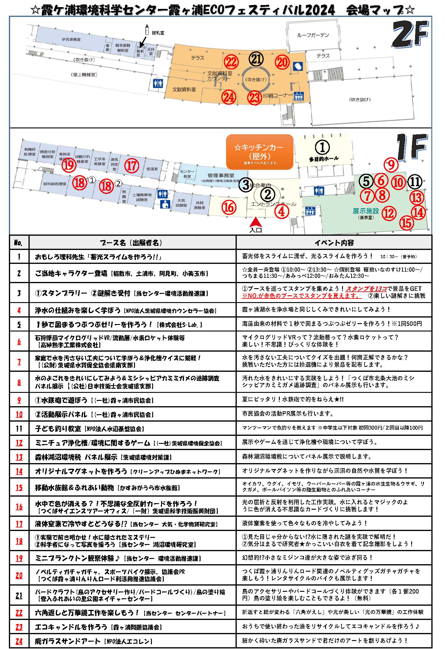 | 21 | スタンプラリー、謎解き(当センター 環境活動推進課) | @霞ケ浦環境科学センター内を冒険してスタンプをGET! 一定数のスタンプを集めて景品を手に入れよう! Aぴゅあちゃんと一緒に、楽しい謎解きに挑戦! |