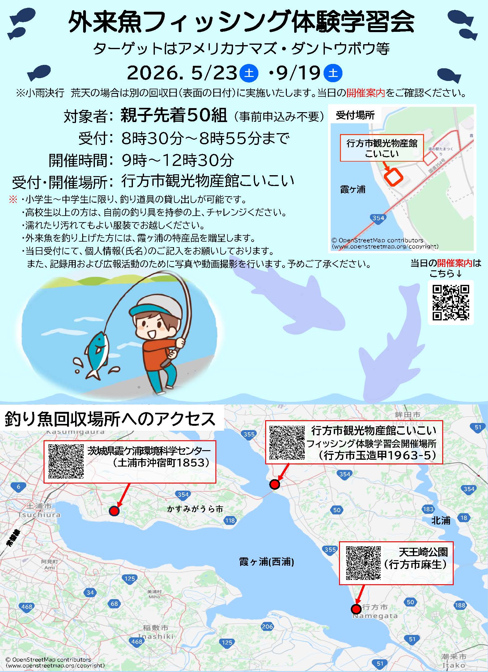 ★★上記開催のうち、5月23日(土)・9月19日(土)には、「外来魚フィッシング体験学習会」を特別開催!★★