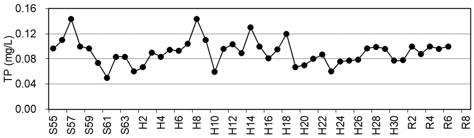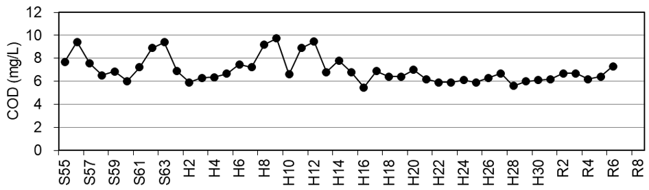涸沼の水質は、年度間で増減が見られるものの、長期的にはほぼ横ばいで推移しています。
