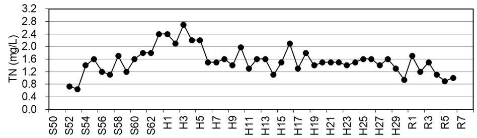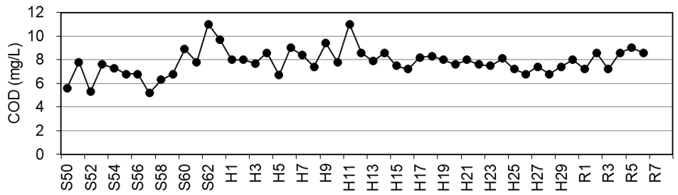 牛久沼の水質は、年度間で増減が見られるものの、長期的にはほぼ横ばいで推移しています。