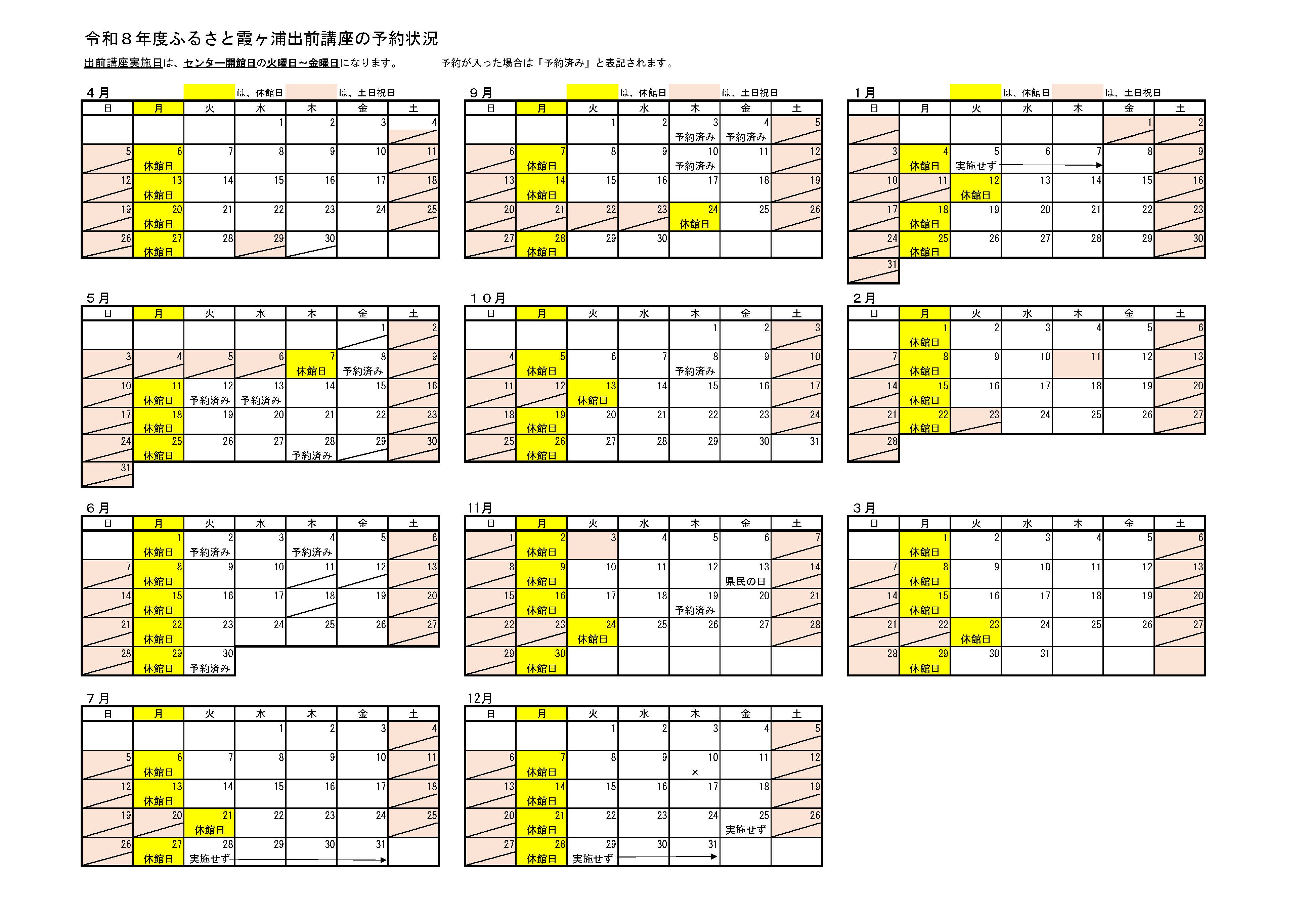 令和8年度ふるさと霞ヶ浦出前講座の予約状況になります。