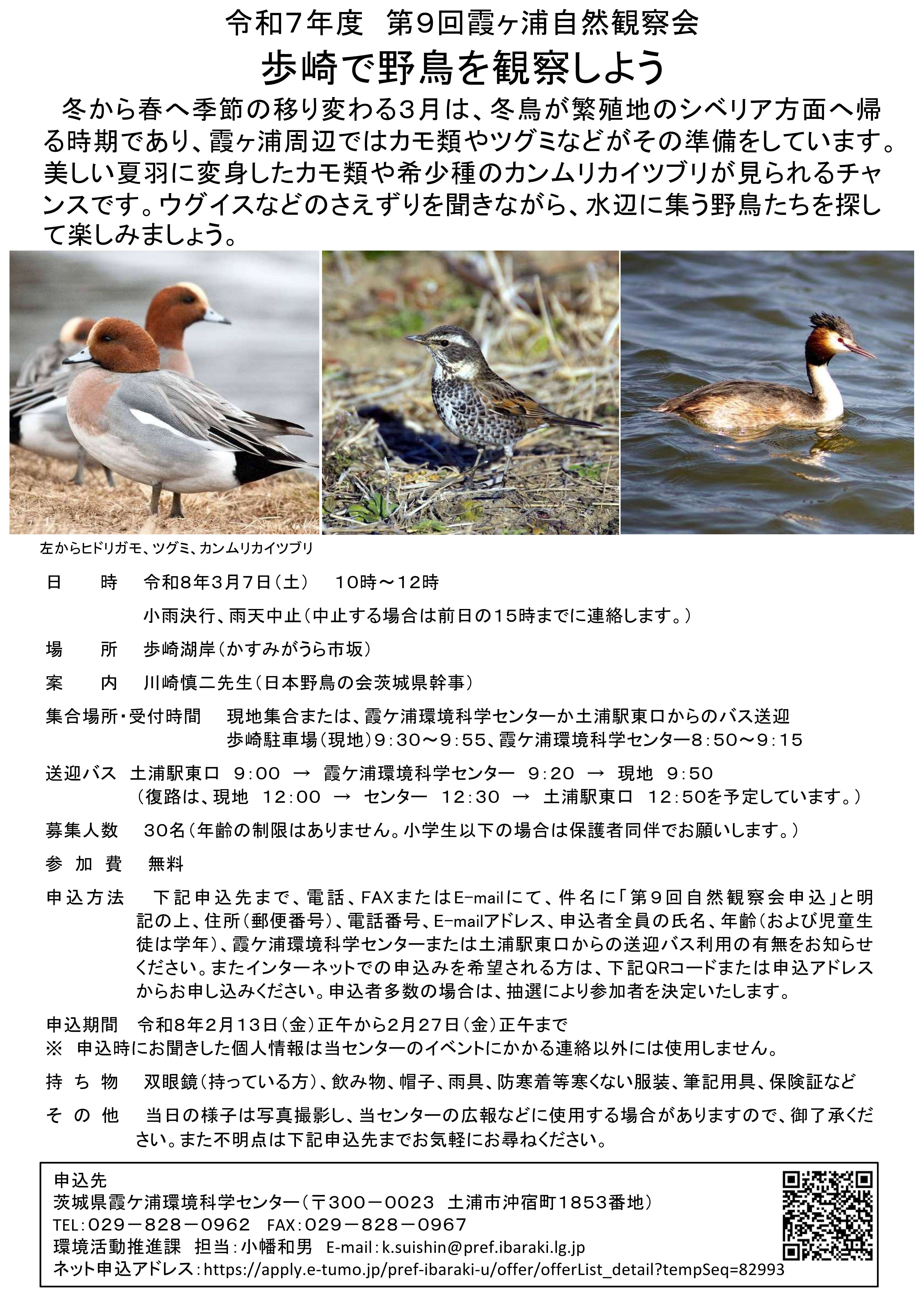 第9回霞ヶ浦自然観察「歩崎で野鳥を観察しよう」を開催します。