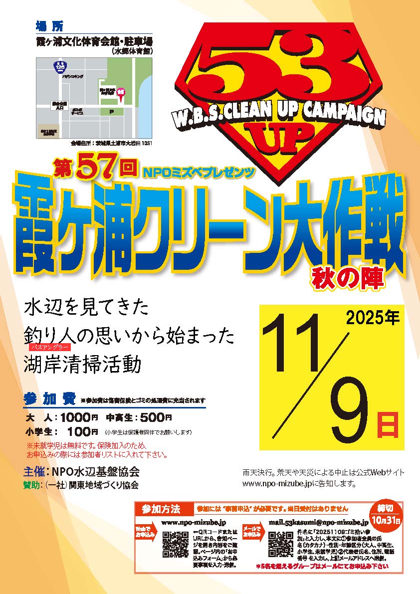 ■令和7年度第3回霞ヶ浦水辺ふれあい事業「第57回 霞ヶ浦クリーン大作戦53PickUp!秋の陣」の参加者募集が開始しました。